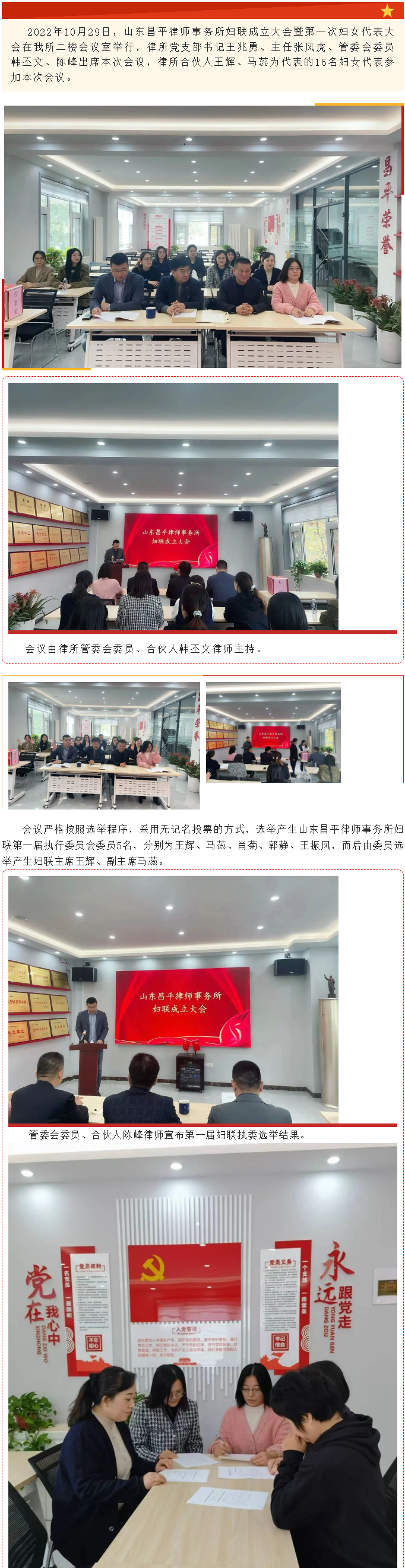 山东昌平律师事务所妇联成立大会暨第一次妇女代表大会成功召开