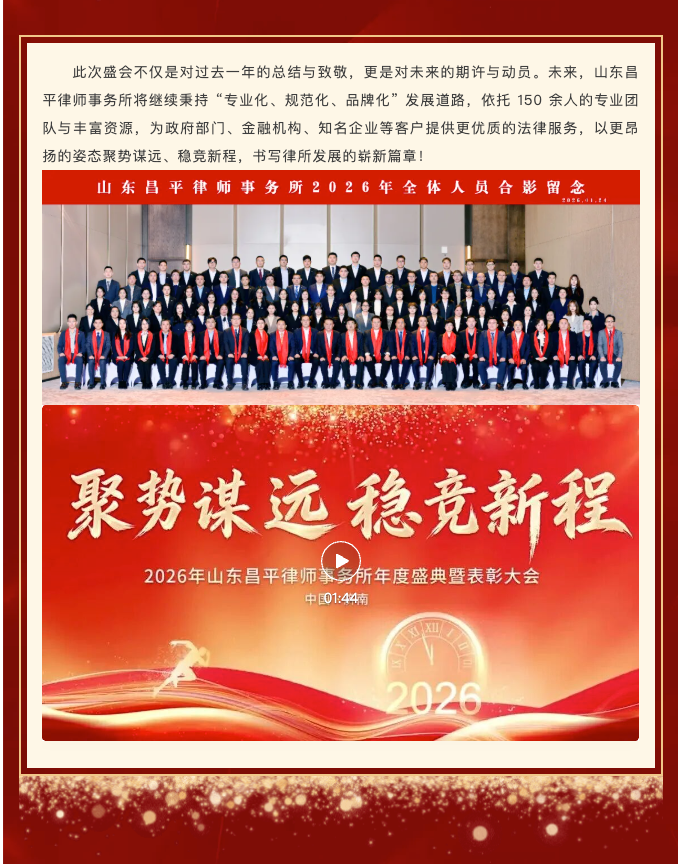 聚势谋远,稳竞新程 | 2026年山东昌平律师事务所年度盛典暨表彰大会圆满举行!