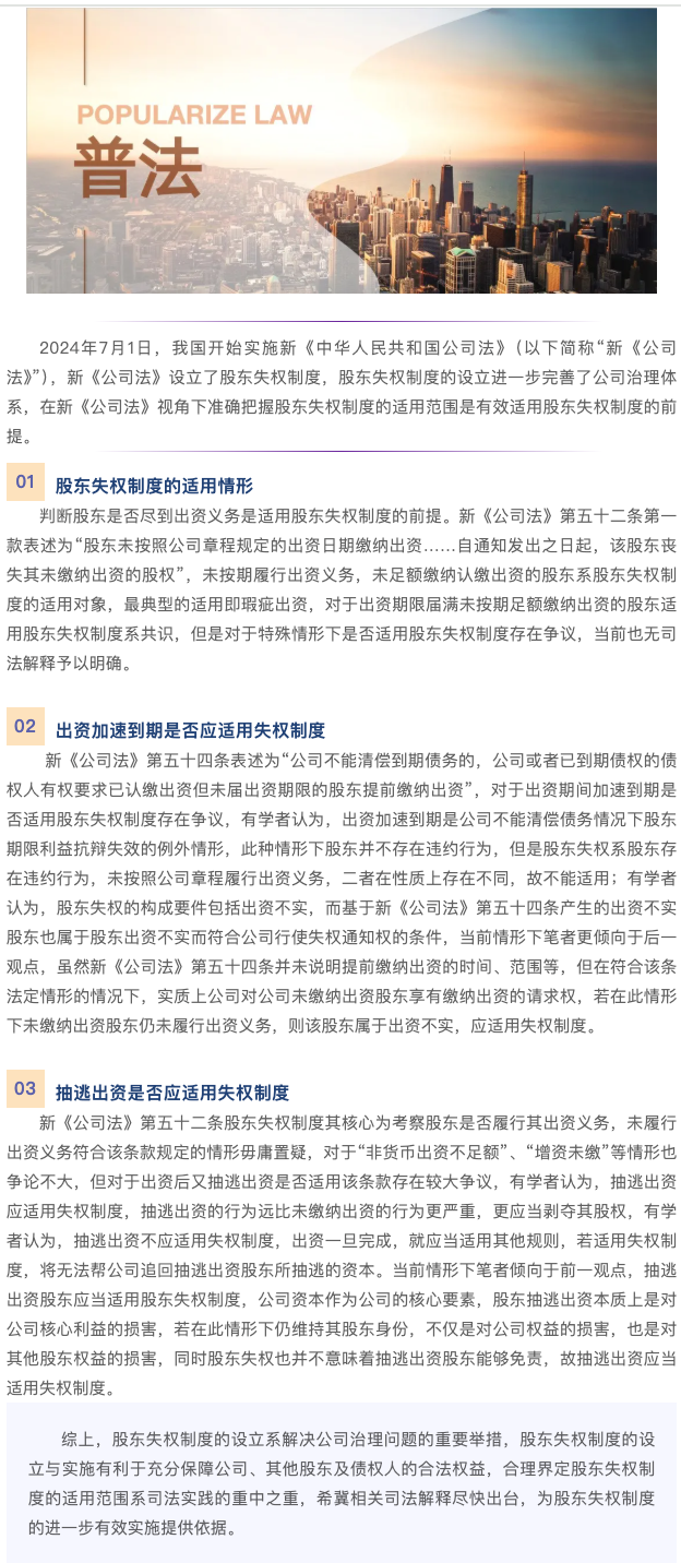 昌平普法 |《公司法》视角下股东失权制度适用范围的探析